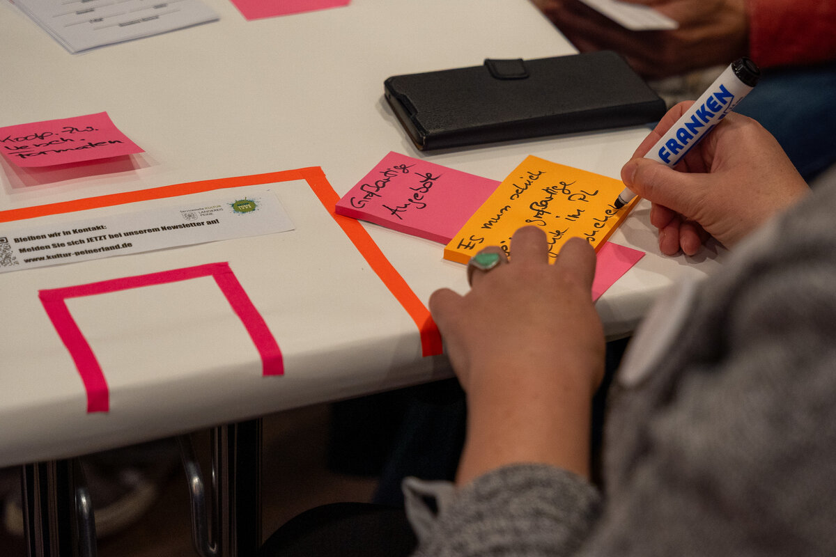 Eine Arbeitsgruppe beschäftigte sich mit dem Blick in eine utopische Zukunft: Wie müsste eine ideale Grundversorgung mit Kultur für Kinder aussehen? Die Antwort: Kultur darf kein Luxus sein – sie ist ein Grundrecht. Damit sie das auch in der Fläche bleibt, braucht es gemeinsame politische, gesellschaftliche und strukturelle Anstrengungen.